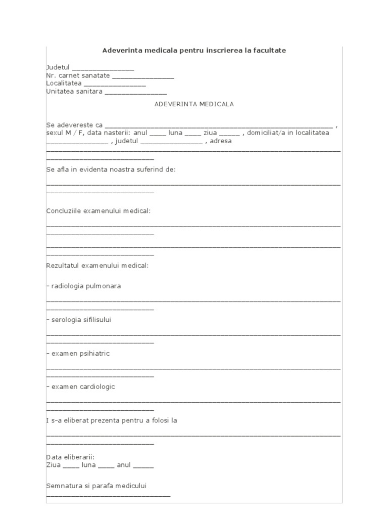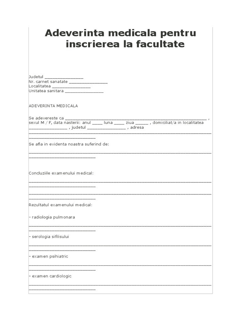 Adeverinta Medicala Inscriere Facultate