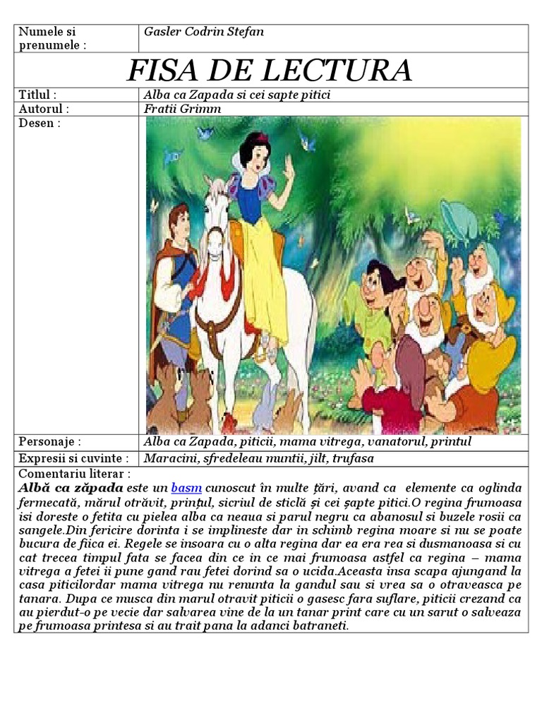 Alba ca zapada poveste pdf. Alba ca zapada este cea mai frumoasa. Atunci albă ca zăpada le spuse povestea ei de a fir a păr. S a intepat in deget si trei picaturi de sange au cazut in zapada facand o sa si doreasca un copil alb ca zapada cu buzele rosii ca sangele si cu parul ca de abanos. Ajunsa aici ea se adaposteste in casa acestora si se imprieteneste cu ei.