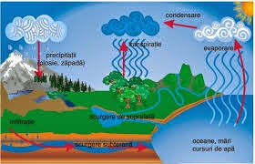Circuitul apei in natura acum daca te ai pregatit pentru distractie si voie buna uite si cateva idei pe care le am pus eu in practica. Căldura soarelui face ca apa de pe pământ oceane lacuri mări să se evaporeze adică să se transforme din lichid în gaz şi să se ridice spre cer. Apa circulă constant dintr un loc în altul prin evaporare condensare precipitaţii sau colectare. în cursul parcurgerii acestui circuit apa își schimbă starea de agregare fiind succesiv în stare solidă lichidă sau gazoasă.