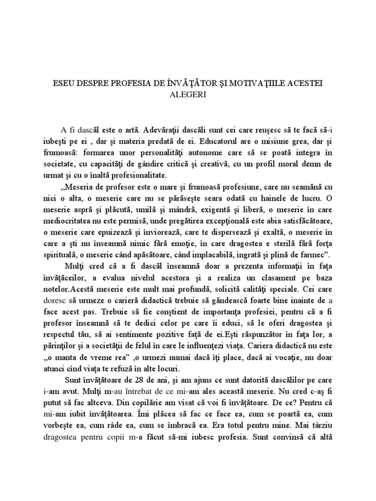 G ovidiu 26 materiale. 0 stele 0 review uri. Profesia de cadru didactic. Profesor profesia un eseu despre importanța cadrelor didactice în viața noastră.