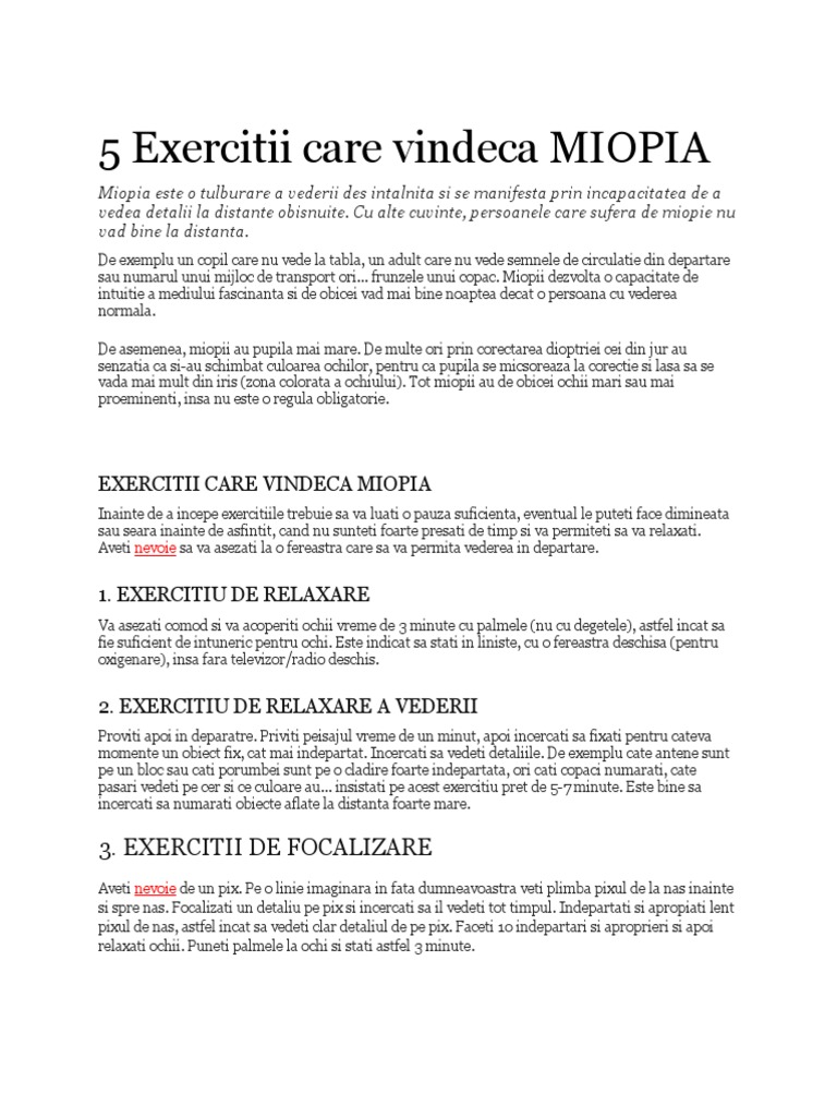 Exerciții pentru miopie march 13 2020 la un moment dat in viață foarte mulți oameni se vor confrunta cu afectiunea de miopie adică cu dificultatea de a vedea bine la distanță. Vreau sa fac ceva exercitii de mentinere ca cele de mai sus fara sa exagerez prea mult. Buna seara ce parere aveti despre exercitiile gen flotari abdomene tractiuni etc. Ridicați mâna și repoziționați degetul la 30 cm de ochi.