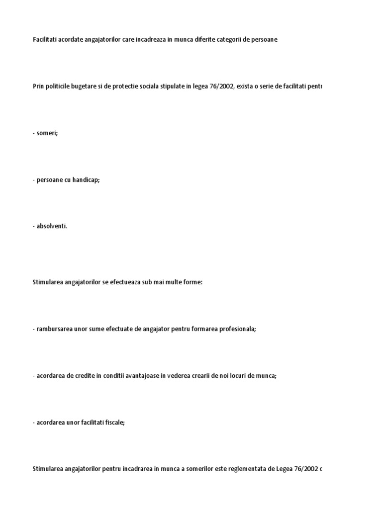In cazul in care o societate doreste sa angajeze o persoana care are varsta de 47 de ani a fost in somaj pana in anul 2011 iar de la terminarea somajului si pana in prezent persoana nu a mai fost angajata aceasta beneficiaza de anumite avantaje. Statul va oferi angajatorilor care incadreaza in munca tineri intre 16 29 de ani si persoane de peste 50 de ani un ajutor lunar de 2 500 lei potrivit oug 92 2020. Categoriile de persoane pentru care statul ofera firmelor stimulente fiscale in prezent sunt. 1 iunie 2020 31 decembrie 2020 încadrează în muncă.