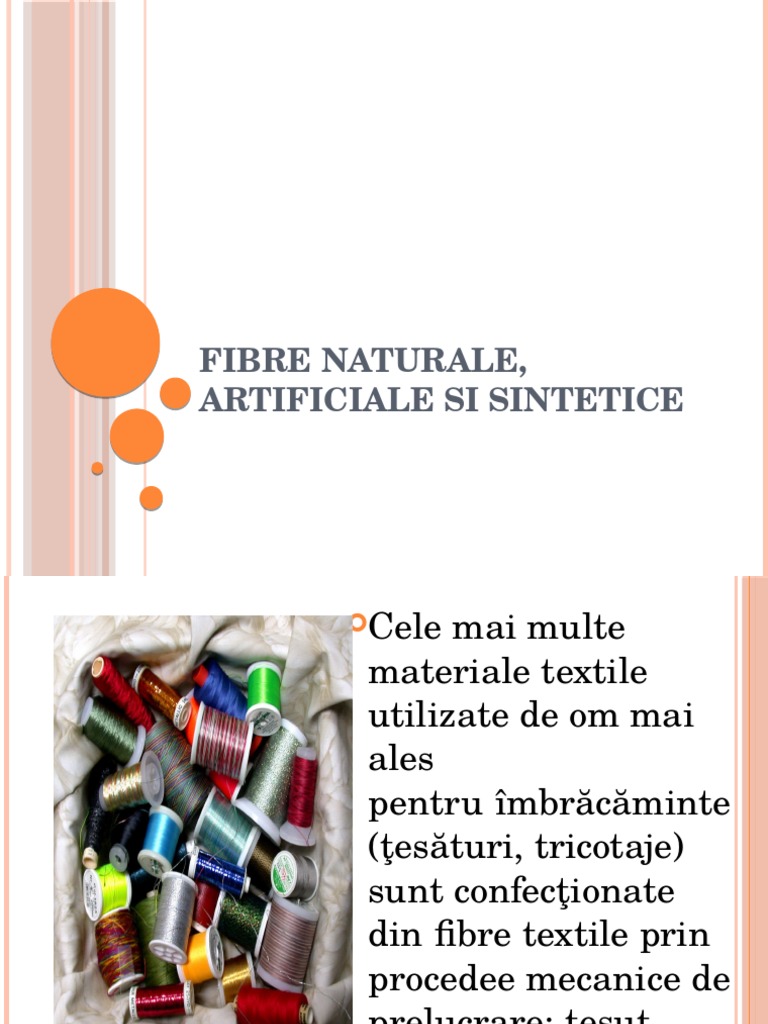 Fibre naturale artificiale si sintetice. Arhiva contine 1 fisier doc de 13 pagini. Fibre naturale artificiale și sintetice fibrele cele mai multe materiale textile utilizate de om mai ales pentru îmbrăcăminte ţesături tricotaje etc sunt confecţionate din fibre textile prin procedee mecanice de prelucrare. Fibre naturale artificiale şi sintetice ligia cristea şi daria roman informaţii generale informaţii generale cele mai multe materiale textile utilizate de om mai ales pentru îmbrăcăminte ţesături tricotaje etc sunt confecţionate din fibre textile prin procedee mecanice de. Profesor indrumator prezentat profesorului.