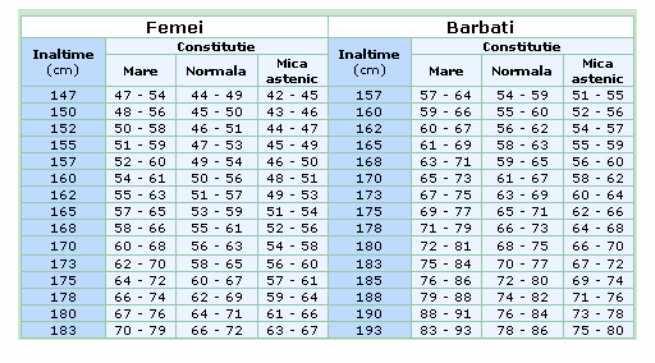 Buna sunt irina si astazi vom vorbi despre greutatea ideala in functie de inaltime si cum se utilizeaza corect un calculator greutate in mod normal greutatea ideala este considerata a fi cea pe care o aveati la 18 ani. Pentru a căuta intr o bază de date te rugăm să dai click pe numele bazei și apoi să folosesti boxul de căutare. Greutatea ideală este variabilă în funcţie de sex şi vârstă existând o marjă în afara căreia pot apărea probleme de sănătate. Dacă ți ai făcut vreodată griji privind felul în care arăți și nu ești sigur sau sigură dacă ar trebui sau nu ar trebui să mai dai jos câteva kilograme ți am pregătit un tabel detaliat care îți arată greutatea ideală în funcție de vârstă și înălțime.