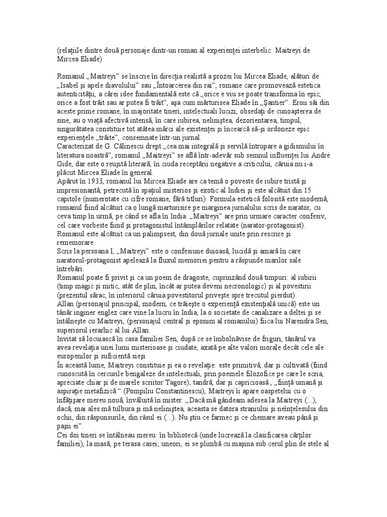 Isabel si apele diavolului ilustreaza continua tensiune a spiritului lui eliade intre magic si mistic intre vointa si har intre autorealizarea eului si pierderea de sine in dumnezeu vizibila si in foiletoanele pe care le trimitea cuvantului in ciuda faptului ca itinerariul spiritual parea sa fi inchis ciclul evolutiei sale de la teosofie la ortodoxie. Proba scrisa la limba si literatura romana. Niciuna dintre vechile angoase nu îl mai tulbură căsătoria nu mai este tulburată de apele experiențelor. Isabel și apele diavolului ilustrează continua tensiune a spiritului lui eliade între magic și mistic între voință și har între autorealizarea eului și pierderea de sine în dumnezeu vizibilă și în foiletoanele pe care le trimitea cuvântului în ciuda faptului că itinerariul spiritual 1927 părea să fi închis ciclul evoluției sale de la teosofie la ortodoxie.