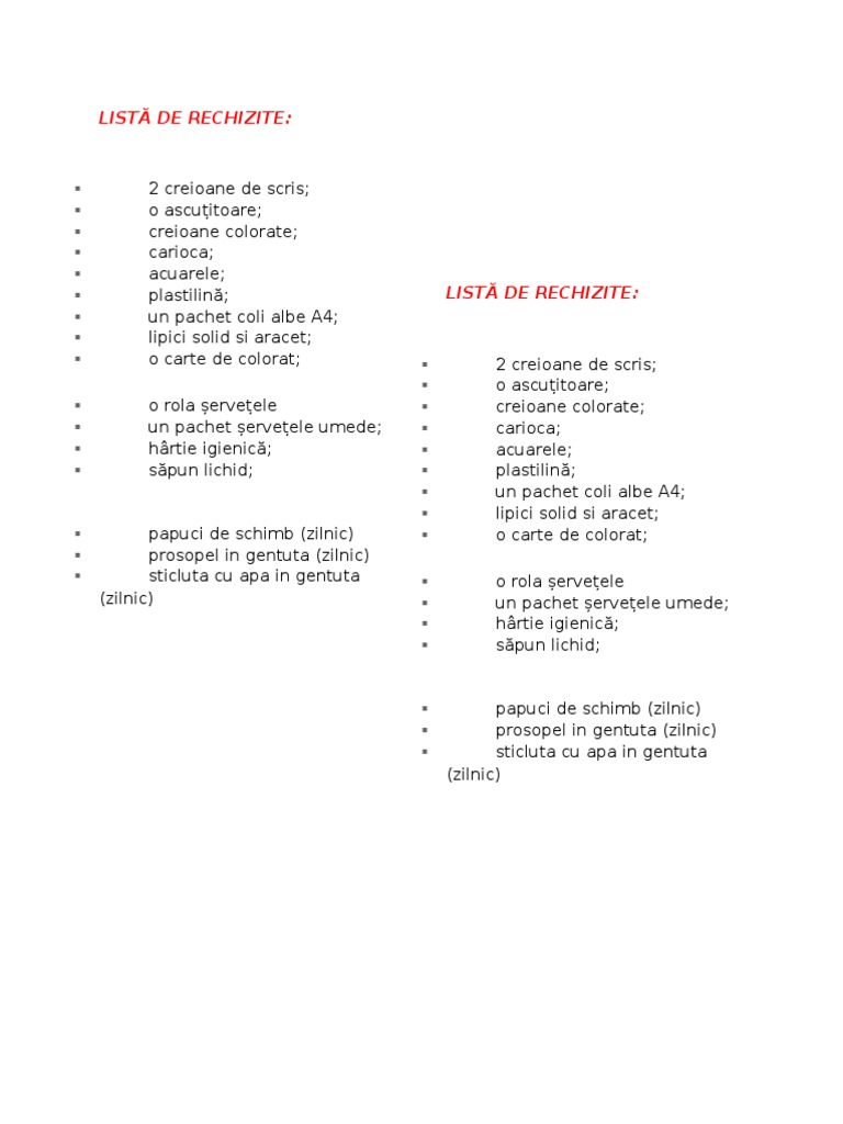 Pentru inceput va spun ca d. Lista sau necesarul de rechizite se refera la grupa 0 mica sau grupa pregatitoare la grupa mijlocie si la cea mare. 0376448192 0 produse 0 00 ron. Este clasa a iv a si a.