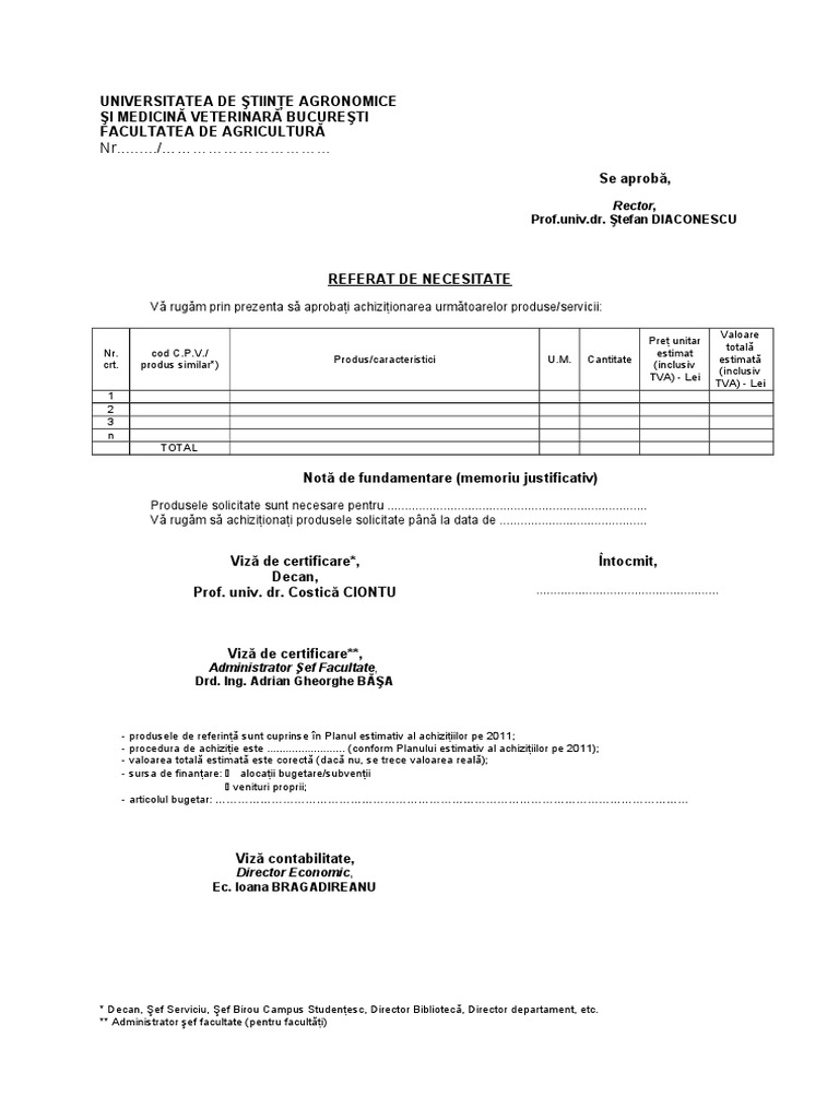 Contabil director cristea marioara. Aceste informatii trebuie sterse din versiunea finala a referatului de necesitate. 8 00 12 00 12 50 durata lecției. Model referat de necesitate.