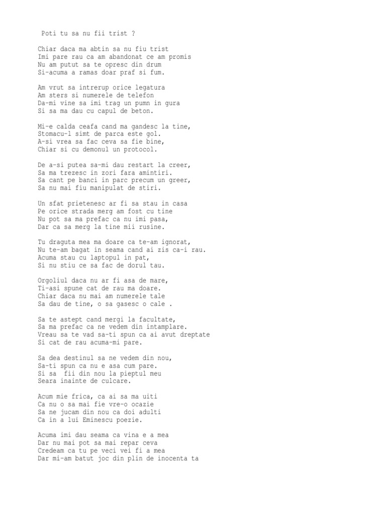 Sa nu mai fii trist. 50 videos play all mix corul de copii elim timișoara nu mai fii trist youtube corul de copii elim timisoara esti rege etern duration. Nu mai fi trist căci pentru tine s a coborât din strălucire emanuel să ne aducă pace în inimă. Covaci emanuel 24 905 views. F g sunt fericit chiar c daca am lacrimi pe obraz f g iata secretul.