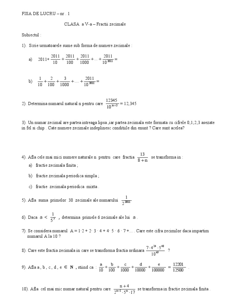 D de exemplu avem numarul zecimal 2 484 si vine 2484 supra 1 urmat de atatea zerouri cate cifre sunt dupa virguladeci va veni 2484 supra 1000 sper ca te am ajutat. Formulele de transformare a fractiilor zecimale a fractiilor zecimale periodice simple si a fractiilor zecimale periodice mixte in fractii ordinare exemple exerciti rezolvate matematica si o fisa de lucru cu exercitii propuse. Fracţiile zecimale finite prin adăugare. Si care e regula pentru numerele cu virgula.