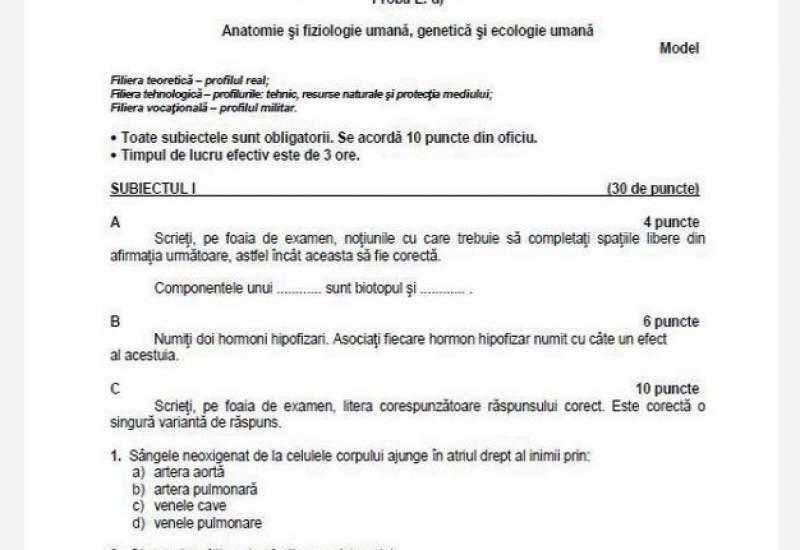 Modelul de subiecte la biologie la bac 2018 a fost disponibil.