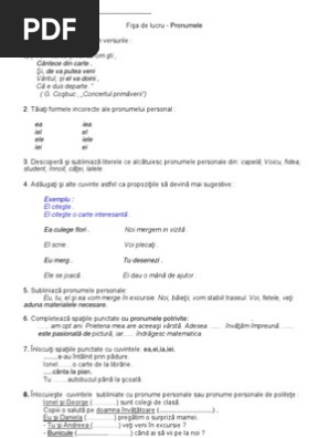 Pronumele clasa a vi a. Plural gen feminin caz d complement direct pronume personal persoana a iii a nr. Pronumele posesiv care însoțește un substantiv și se acordă cu. în propoziția el este andrei cuvântul subliniat ține locul.